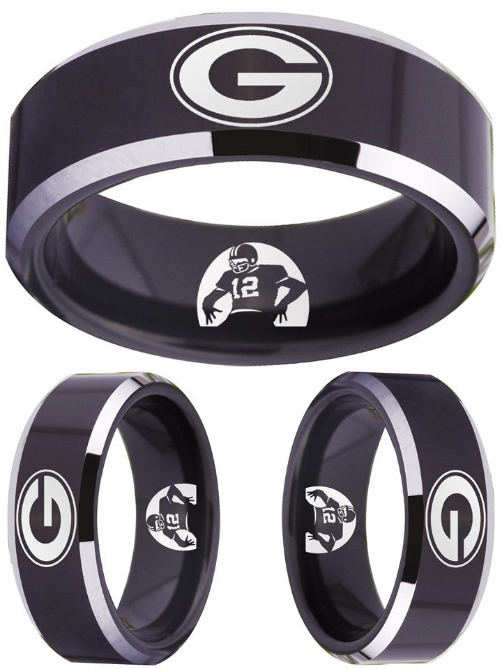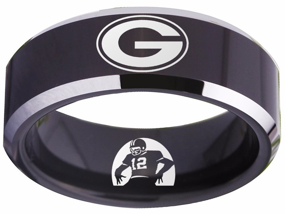 Green Bay Packers Ring | Black & Silver Wedding Ring | Sizes 4-17