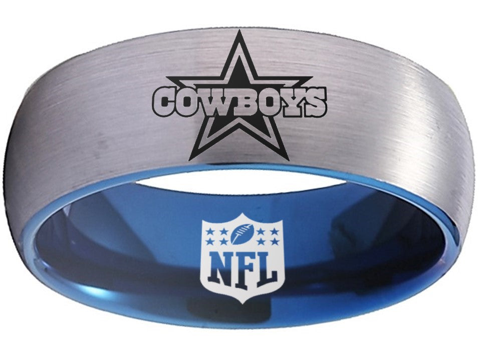 Dallas Cowboys Ring Silver and Blue Ring 8mm Tungsten Ring #cowboys – Exclusive Inspirations