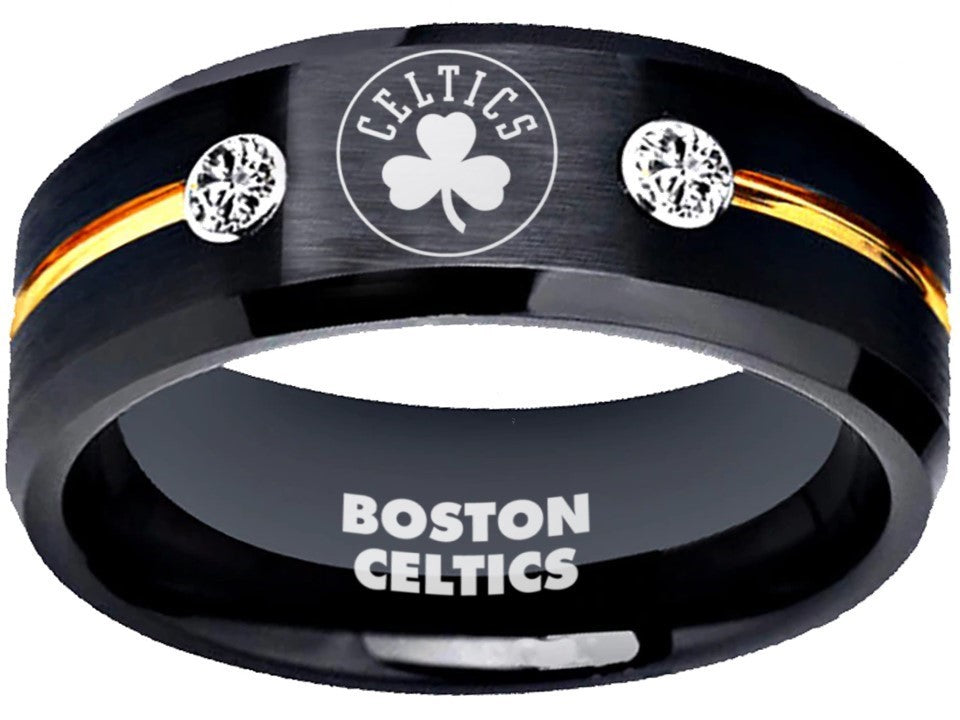 Boston Celtics Ring Clover Black & Gold CZ Wedding Ring Sizes 6-13 #celtics