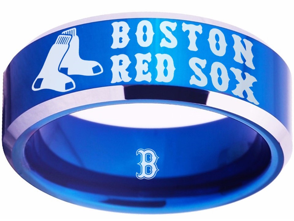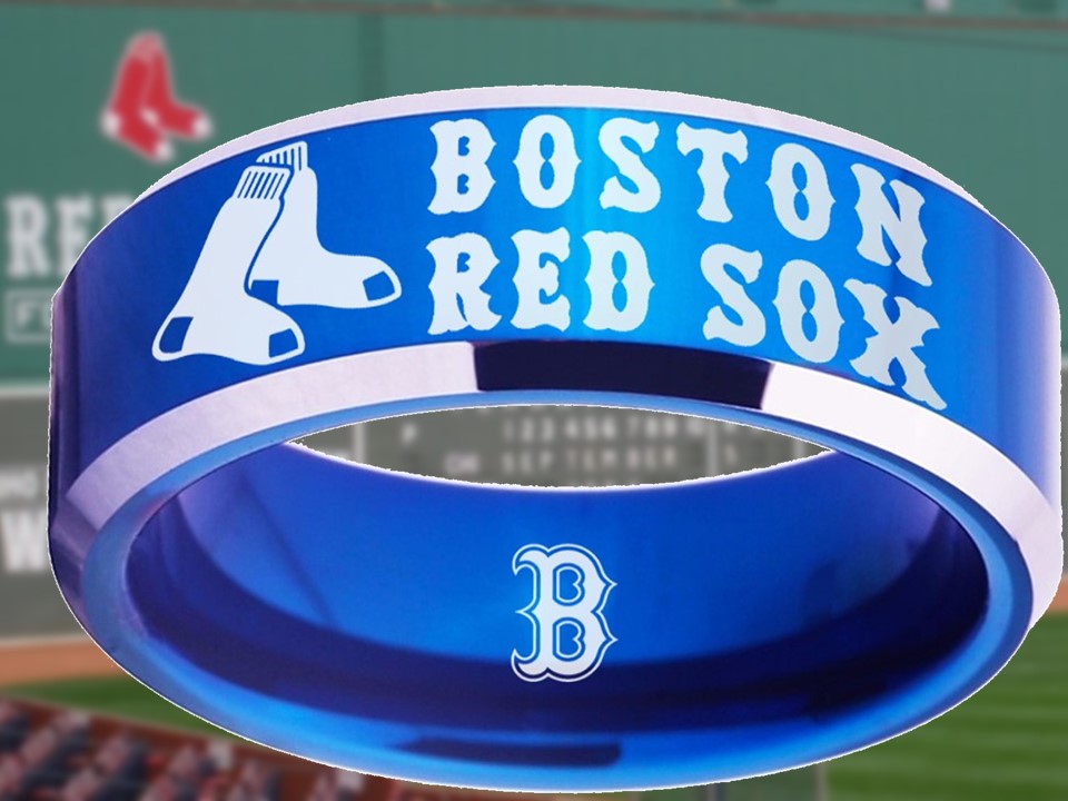 Boston Red Sox Ring Red Sox Wedding Ring Blue & Silver Ring Size 4 - 17 #redsox