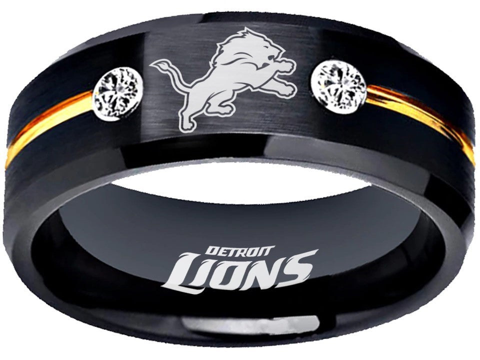 Detroit Lions Ring Black & Gold CZ Wedding Band | Sizes 6-13 #detroit #lions #nfl