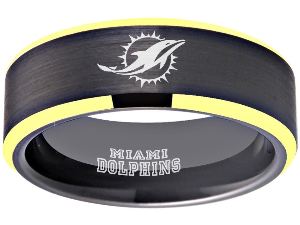 Miami Dolphins Ring Black & Gold Tungsten Wedding Ring #miami #dolphins #miamidolphins