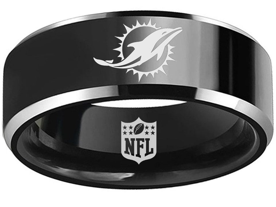 Miami Dolphins Ring | Black & Silver Wedding Ring| Sizes 4-17 – Exclusive Inspirations
